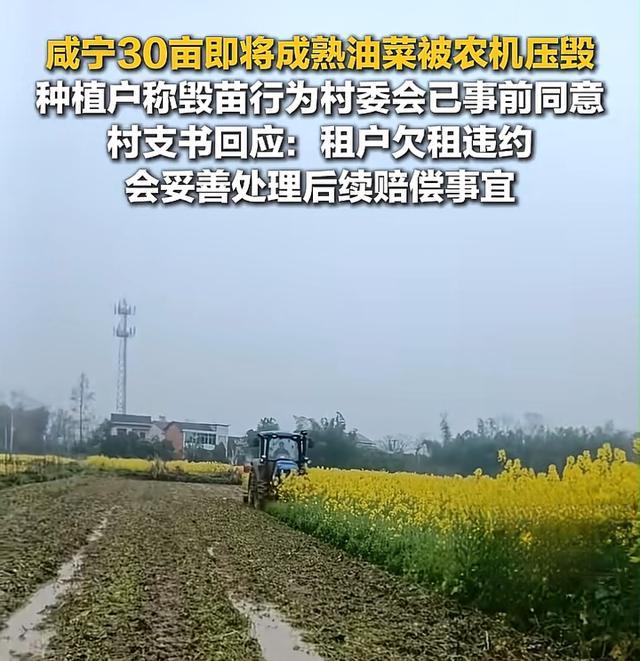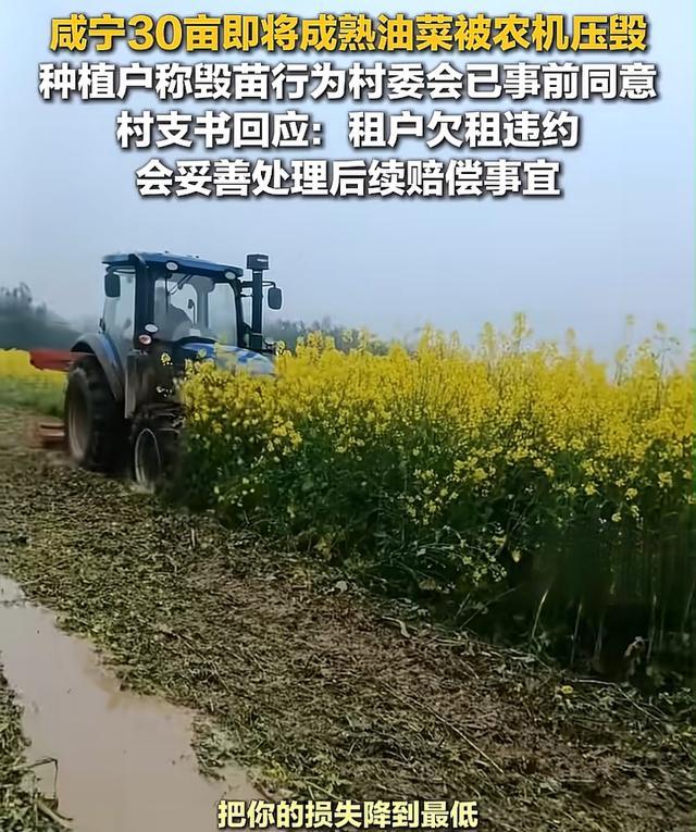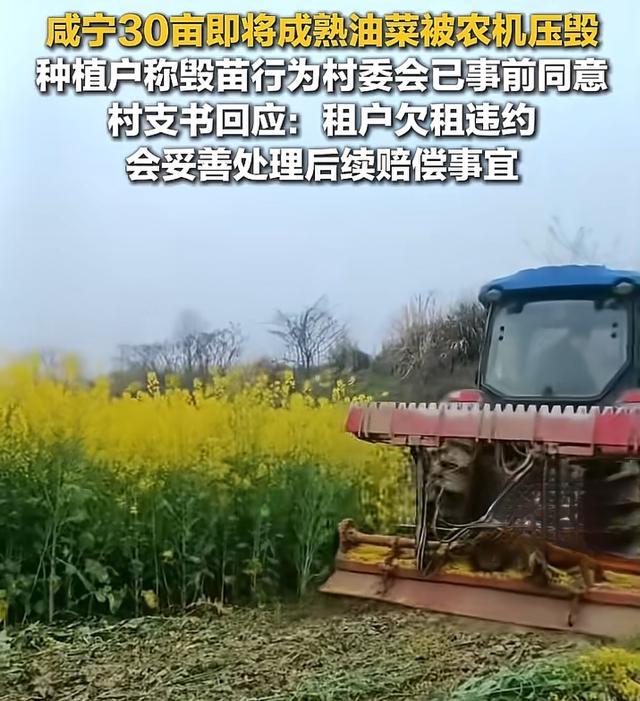 假设村委会说的是真的——种植户确实欠租了。那村委会能不能直接开农机去压人家的油菜?