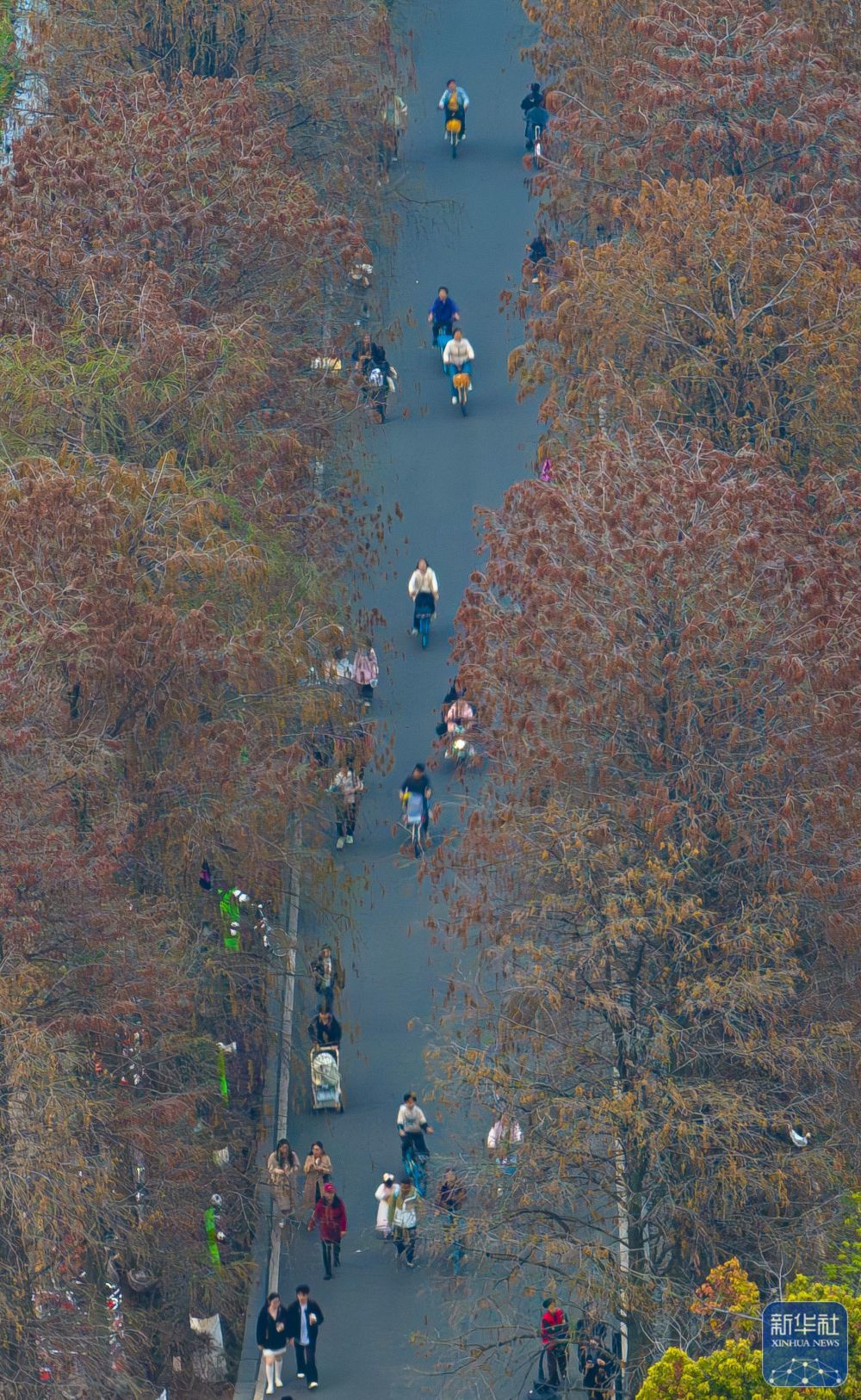 ↑市民在武汉市东湖绿道骑行(2025年11月29日摄)。新华社记者 肖艺九 摄