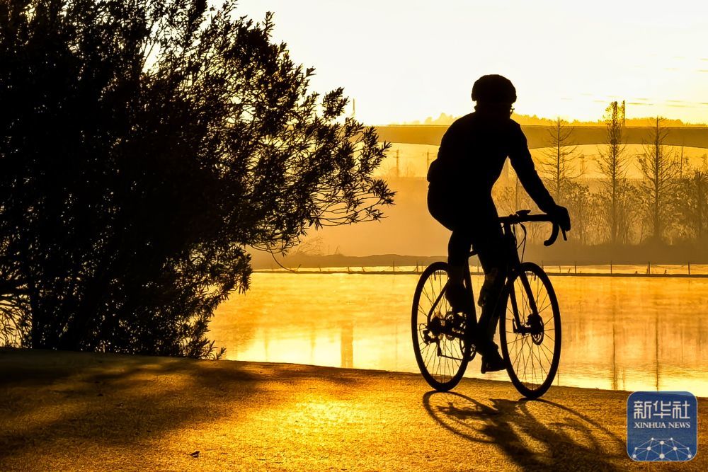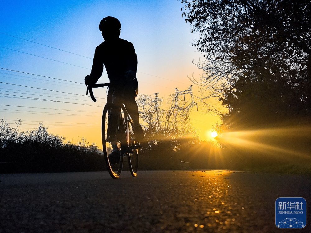 ↑市民在武汉市东湖绿道骑行(2025年12月14日摄)。新华社记者 肖艺九 摄