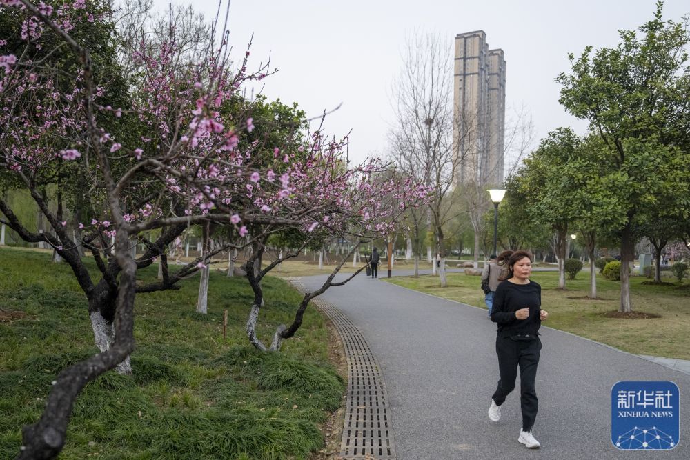 ↑市民在武汉沙湖公园锻炼(3月21日摄)。新华社记者 伍志尊 摄