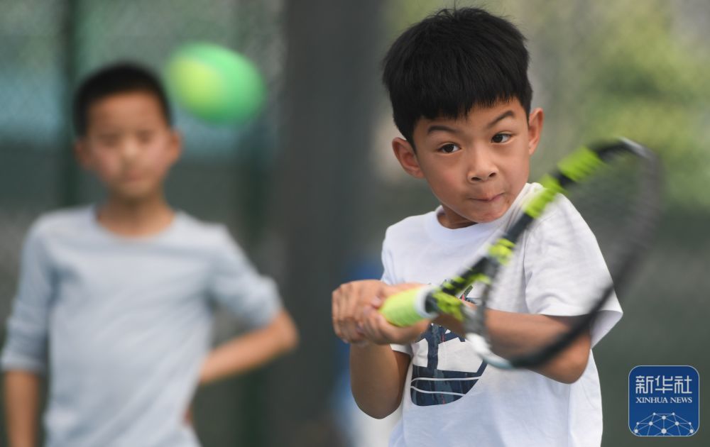 商讨这是湖北省京山市文峰网球特色村网球训练场(2023年8月9日摄,无人机照片)。新华社记者 肖艺九 摄