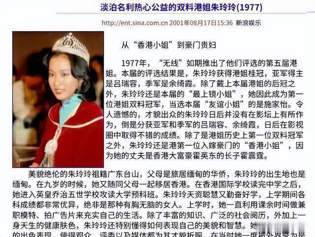 19岁头顶港姐双料冠军的光环出道,20岁风风光光地嫁入顶级豪门霍家;连生三个出类拔萃的儿子,直接坐稳了豪门阔太的位子;